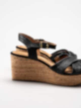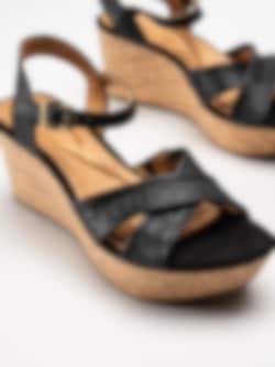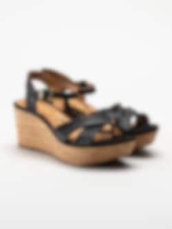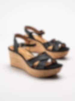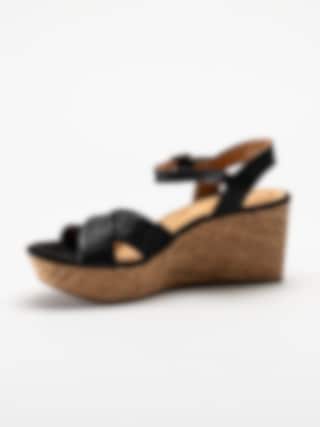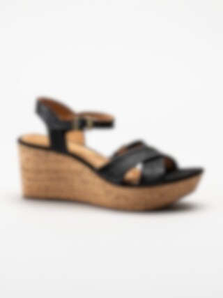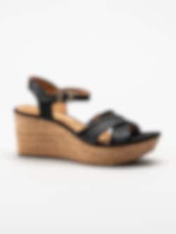 Clarks - Elleri Plum - Svarta kilklackade sandaletter i skinn