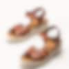 Modellen har flätade remmar framtill som ger ett dekorativt och hantverksinspirerat uttryck, samt ett justerbart spänne över ankeln som gör det enkelt att anpassa passformen efter foten. Den lilla kilklacken tillsammans med den mjuka sulan bidrar till extra komfort och en behaglig gång.