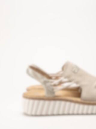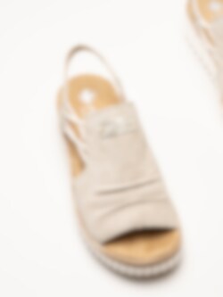 Beige sandaler från Rieker i färgen Ginger med en bekväm och avslappnad design. Ovandelen är tillverkad i syntet och pryds av en dekorativ repdetalj som ger ett somrigt och stilfullt uttryck, medan bakkappan har ett ormskinnsmönster som tillför en trendig detalj.