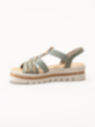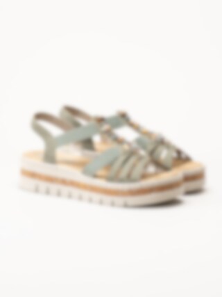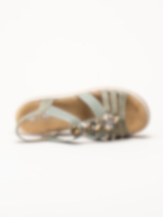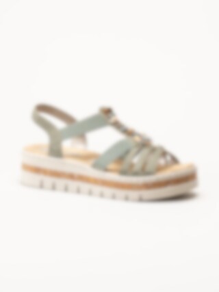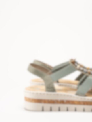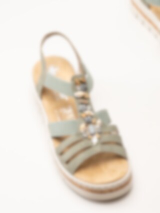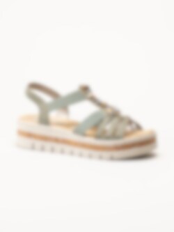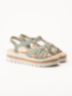 Gröna sandaler från Rieker i färgen Schilf med en somrig och dekorativ design. Ovandelen är tillverkad i en kombination av syntet och resår och pryds av vacker pärldekor med snäckor som ger ett unikt och strandinspirerat uttryck.