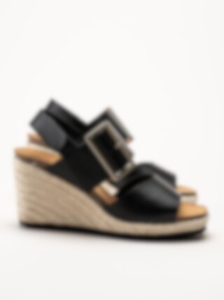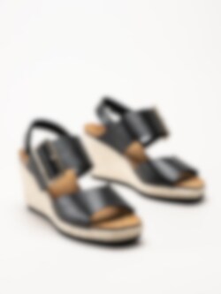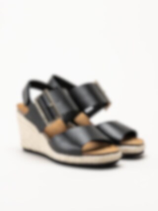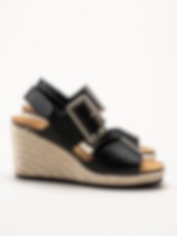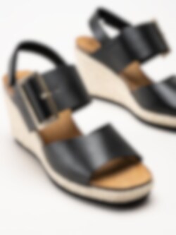 Sweeks - Tyra - Svarta kilklackade sandaletter i skinn