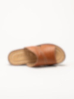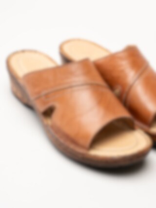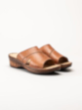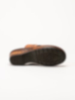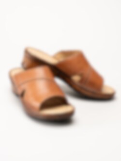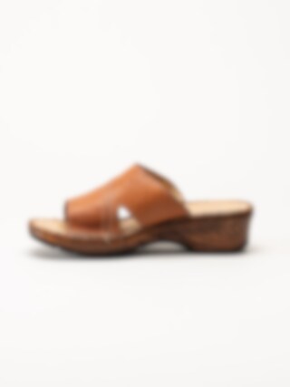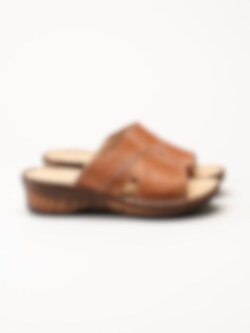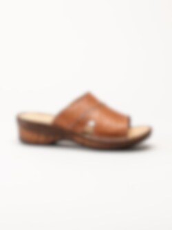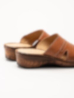 Bruna slip in sandaletter i färgen Brandy. Bekväma sommarskor i mjukt skinn med sömmar och fina detaljer. Skön klack på ca 5 cm och flexibel yttersula. En fin modell att spendera sommaren i!