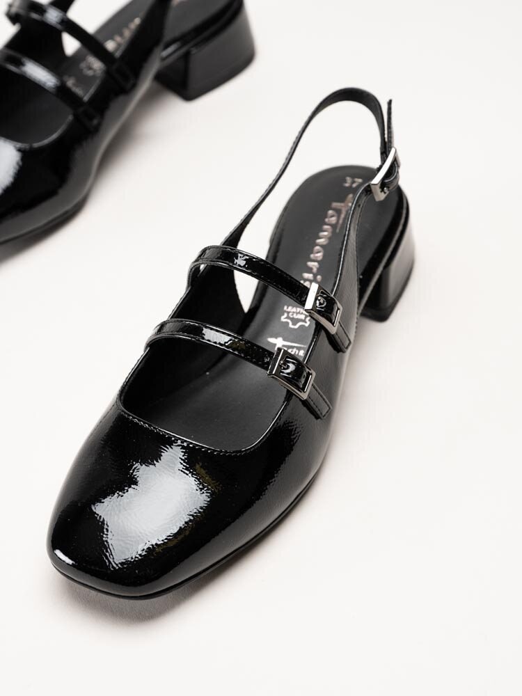Svarta slingback pumps i lack Black Patent från Tamaris. Elegant modell med rundad tå, smala spännen över foten och justerbart spänne baktill för optimal passform. Bekvämt foder i textil och innersula i skinn med Touch it funktion som ger en bekväm känsla. Lägre klack på ca 3,5 cm. Dessa pumps kommer att komplettera vilken outfit som helst.