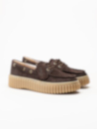 Clarks - Torhill Boat - Mörkbruna snörskor i mocka