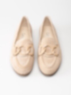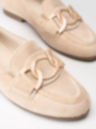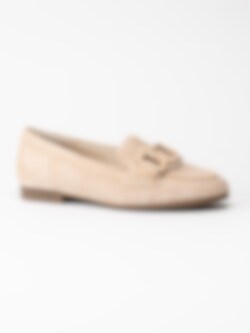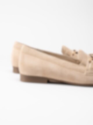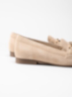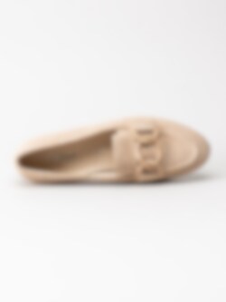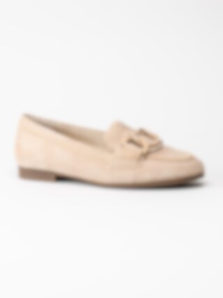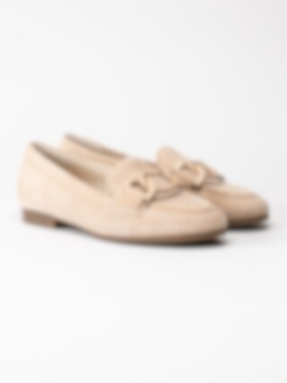 Beige loafers i mocka från Gabor. Fina skor med dekorativ kedja framtill, foder och innersula i skinn. Låg yttersula i gummi. Perfekta skor som finar upp din outfit.