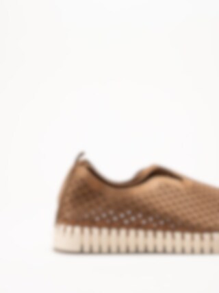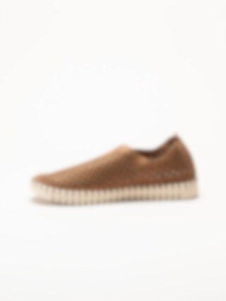Bruna slip-on skor Tulip Glitter från Ilse Jacobsen i färgen Nougat Pearled Ivory. Skorna är tillverkade i syntet med en perforerad ovandel som har en subtil touch av glitter och skimmer, vilket ger ett lekfullt och elegant uttryck. Den dekorativa tråcklade sömmen längs sulkanten ger en fin detalj som lyfter designen.