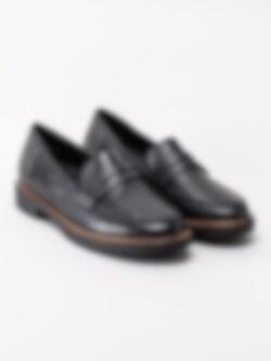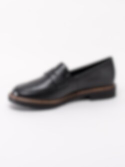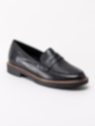 Svarta loafers Manchester från Ara i skinn. En snygg och stilren modell med Aras High Soft funktion, ultrasoft ovandel i skinn, mycket flexibel yttersula och en mjuk vadderad innersula. Snygg markant brun söm runt sula och ett brett spänne i skinn skapar en klassiker att bära både till vardags och fest.