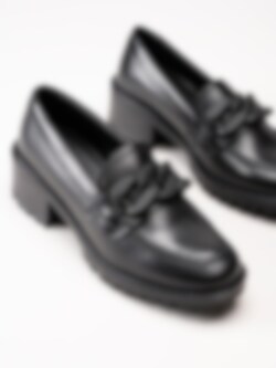 Copenhagen Shoes - Rainbow - Svarta loafers med klossklack