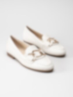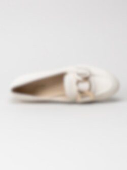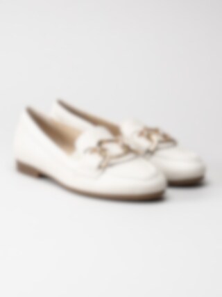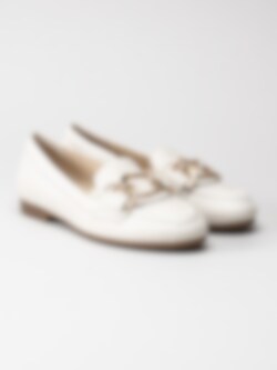 Off white loafers i skinn från Gabor. En krispig och vårfräsch modell med dekorativt guldspänne på ovandel. Foder och innersula i skönt skinn. Kombinera med en klassisk kostym eller kanske dina favoritjeans.