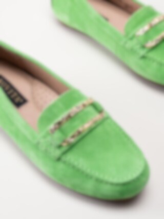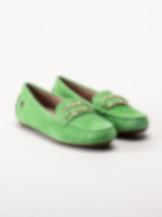 Novita - Parma Flat - Gröna loafers med guldfärgat spänne