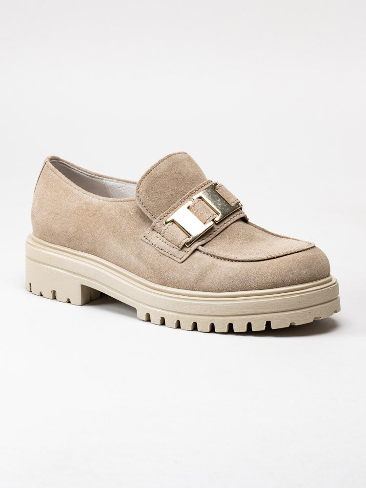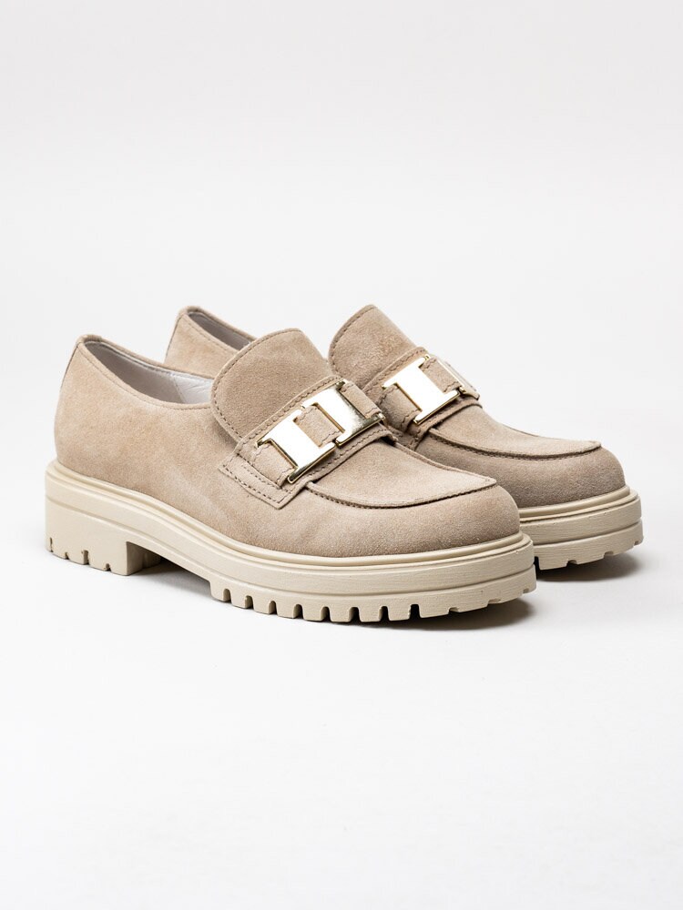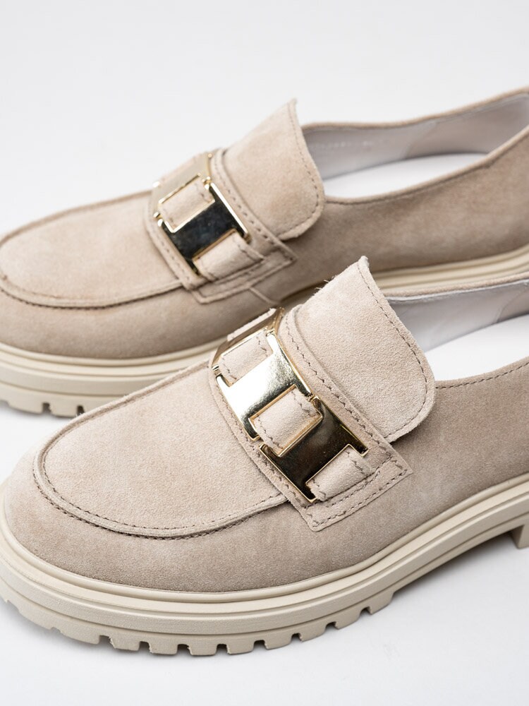 Gabor - Beige platåloafers i mocka