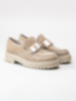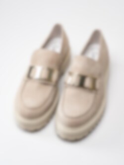 Beige platåloafers tillverkade i mocka från Gabor.