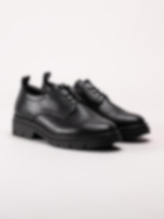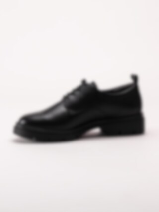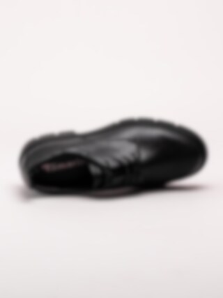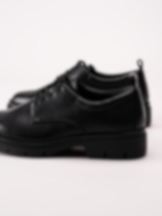 Svarta snörskor i skinnimitation från Tamaris. Trendiga skor helt tillverkade i veganska material. Chunky yttersula med klackhöjd på ca 4 cm. En härlig klassiker som passar lika bra till kostymbyxan som till kjol eller ett par jeans.
