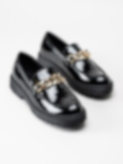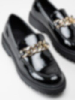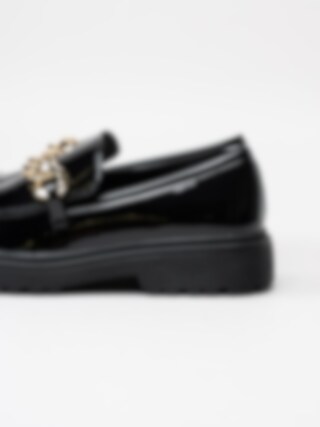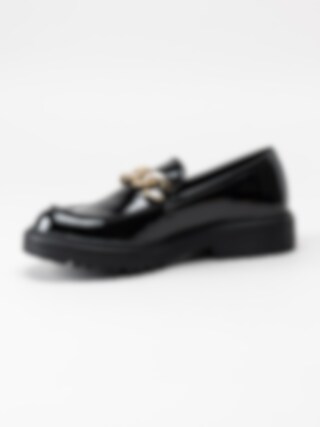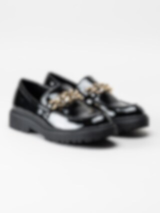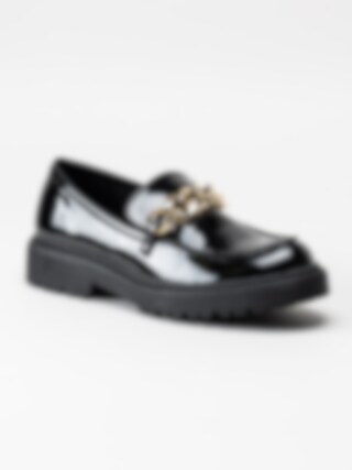Duffy - Svarta loafers i lack med guldlänk