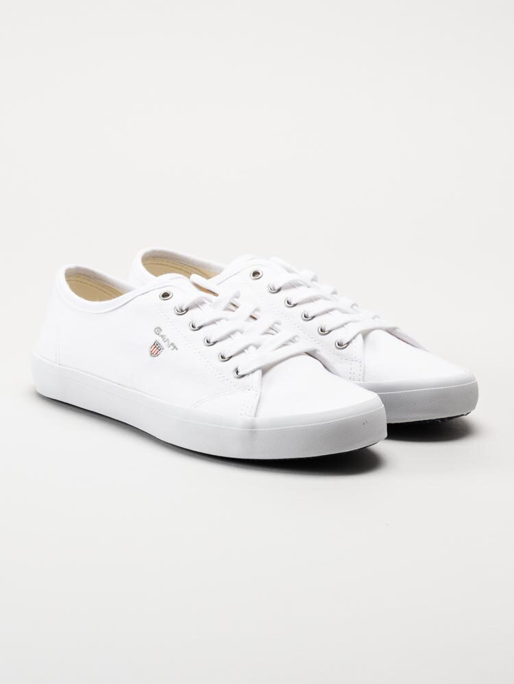 Vita låga textilskor Pillox från Gant. Skorna är tillverkade i slitstark canvas som ger ett avslappnat och stilrent uttryck. Den låga modellen i kombination med klassisk snörning framtill gör det enkelt att justera passformen för en bekväm och stabil känsla.
