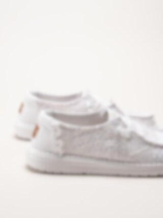 Hey Dude - Wendy Crochet Lace - Vita tygskor med virkade spetsdetaljer