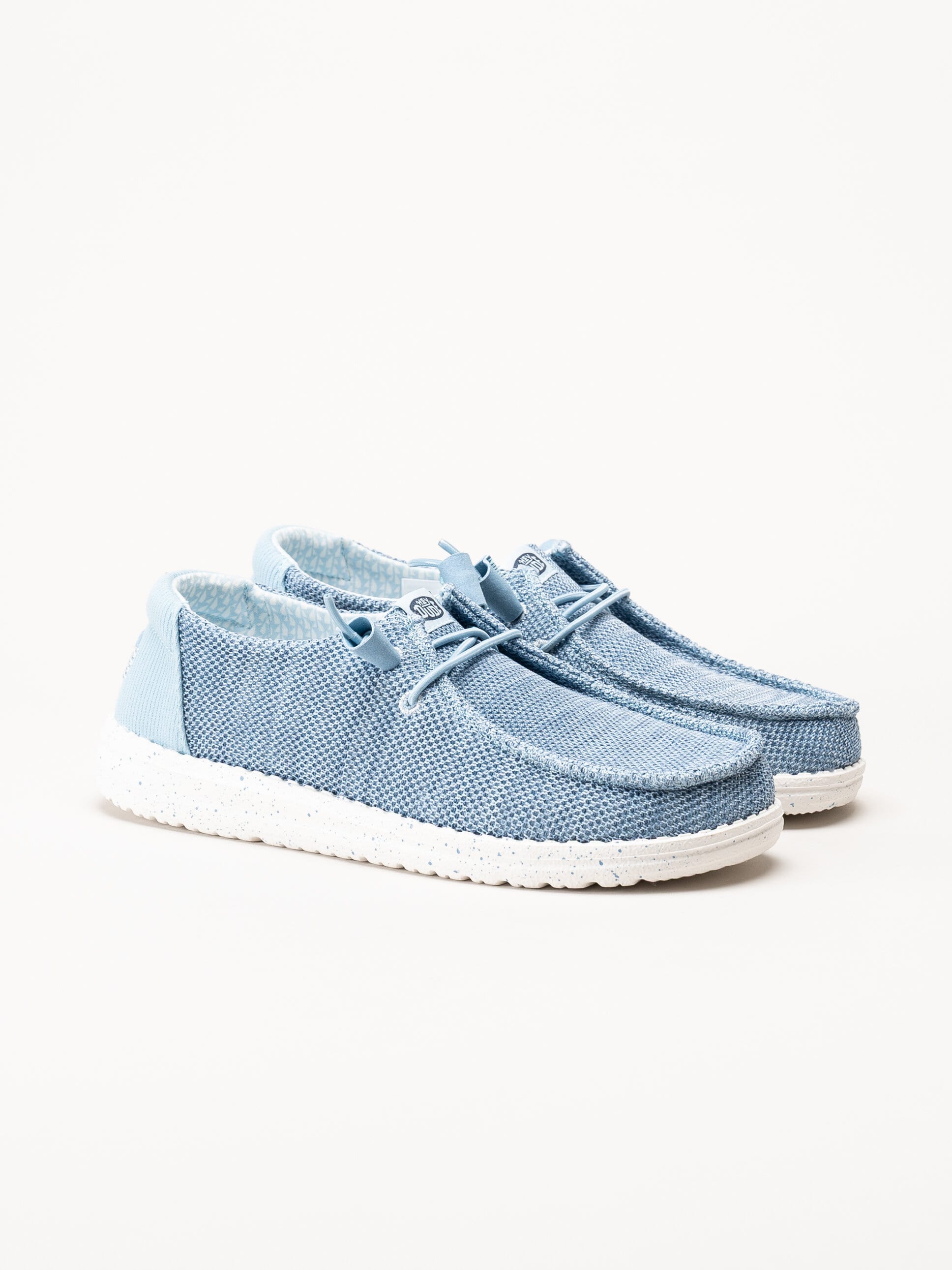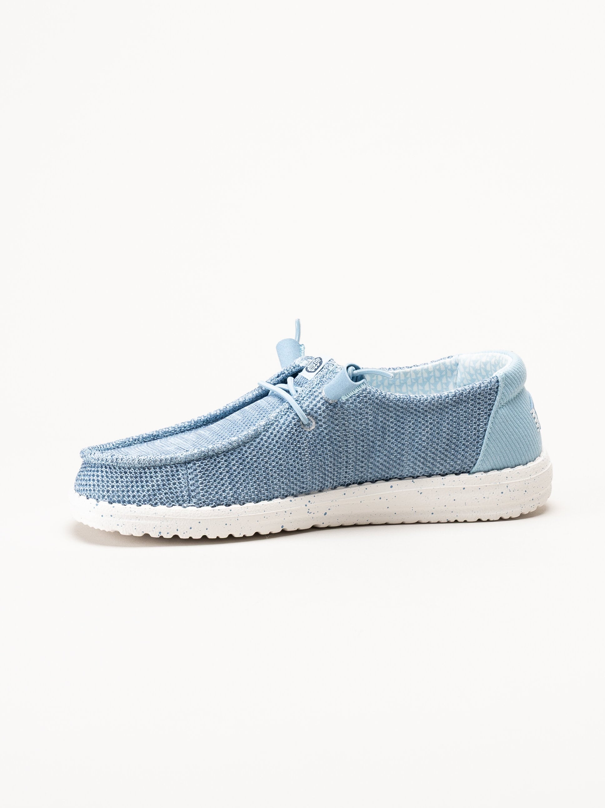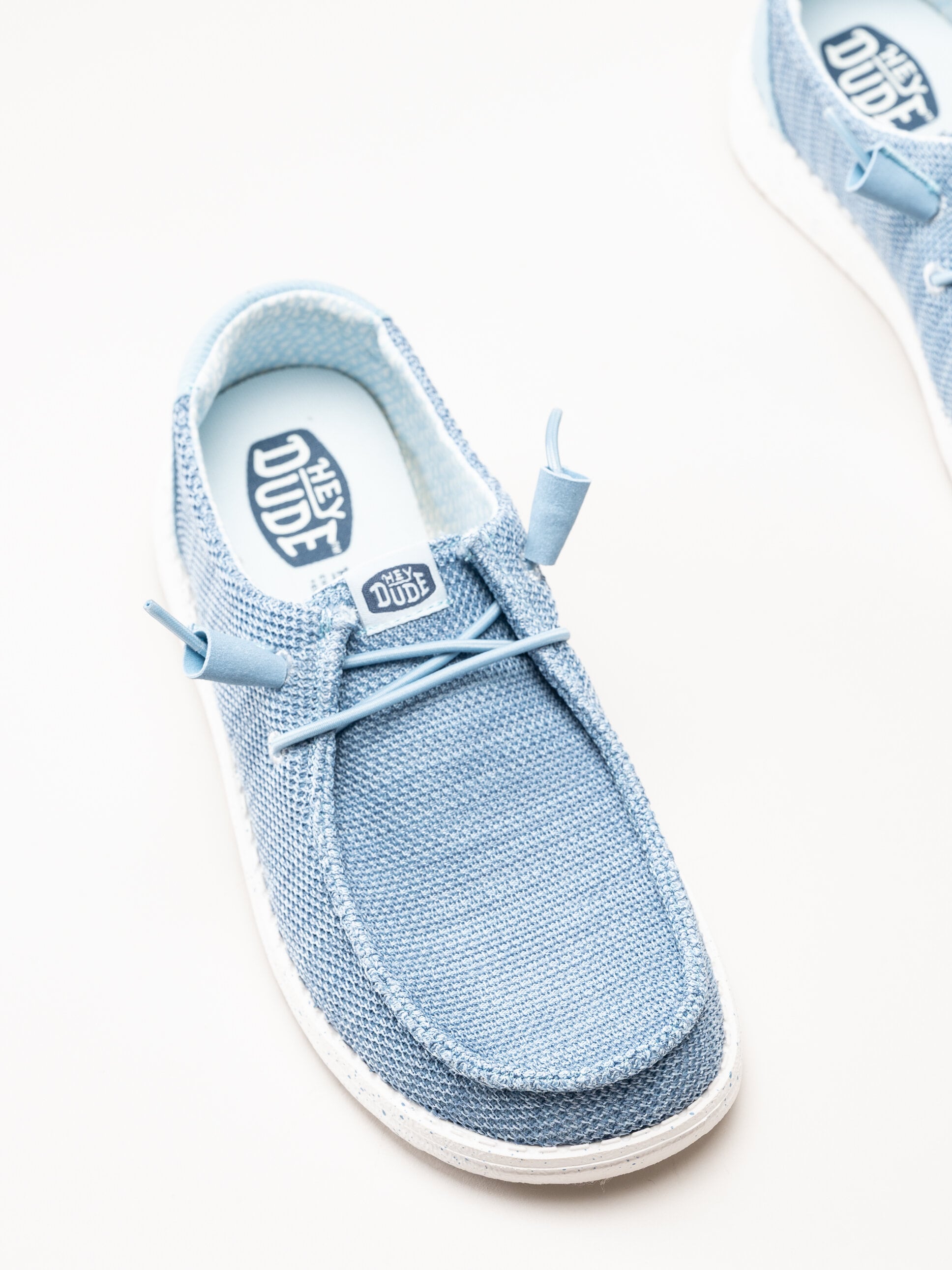 Ljusblå snörskor Wendy från Hey Dude i färgen Blue Breeze med en avslappnad och lätt design. Ovandelen är tillverkad i textil som ger ett mjukt och luftigt uttryck. Modellen har elastisk snörning som gör skorna enkla att ta på och av samt ger en flexibel och bekväm passform.