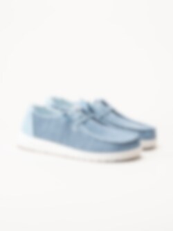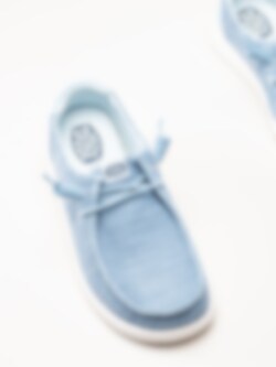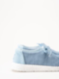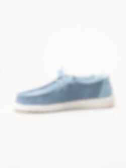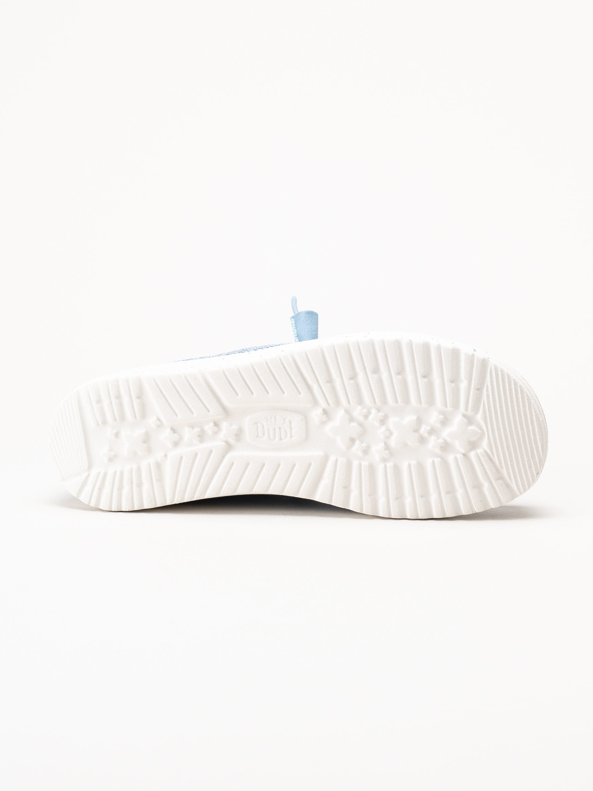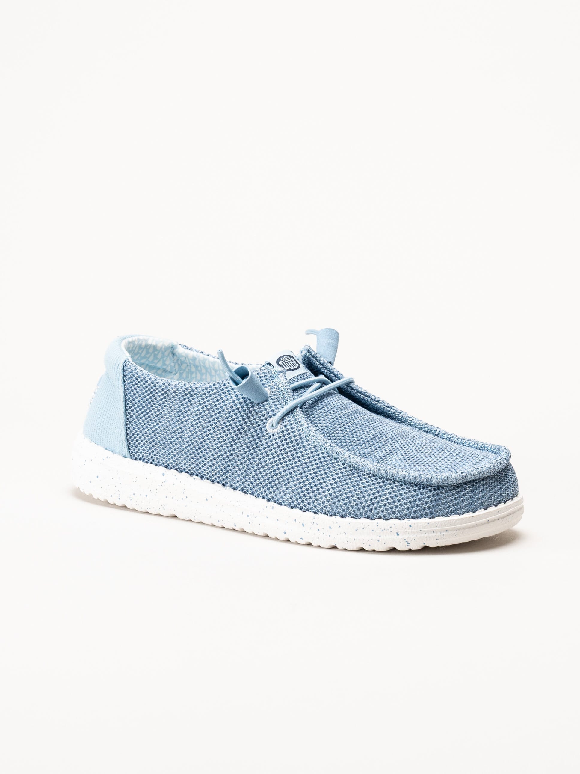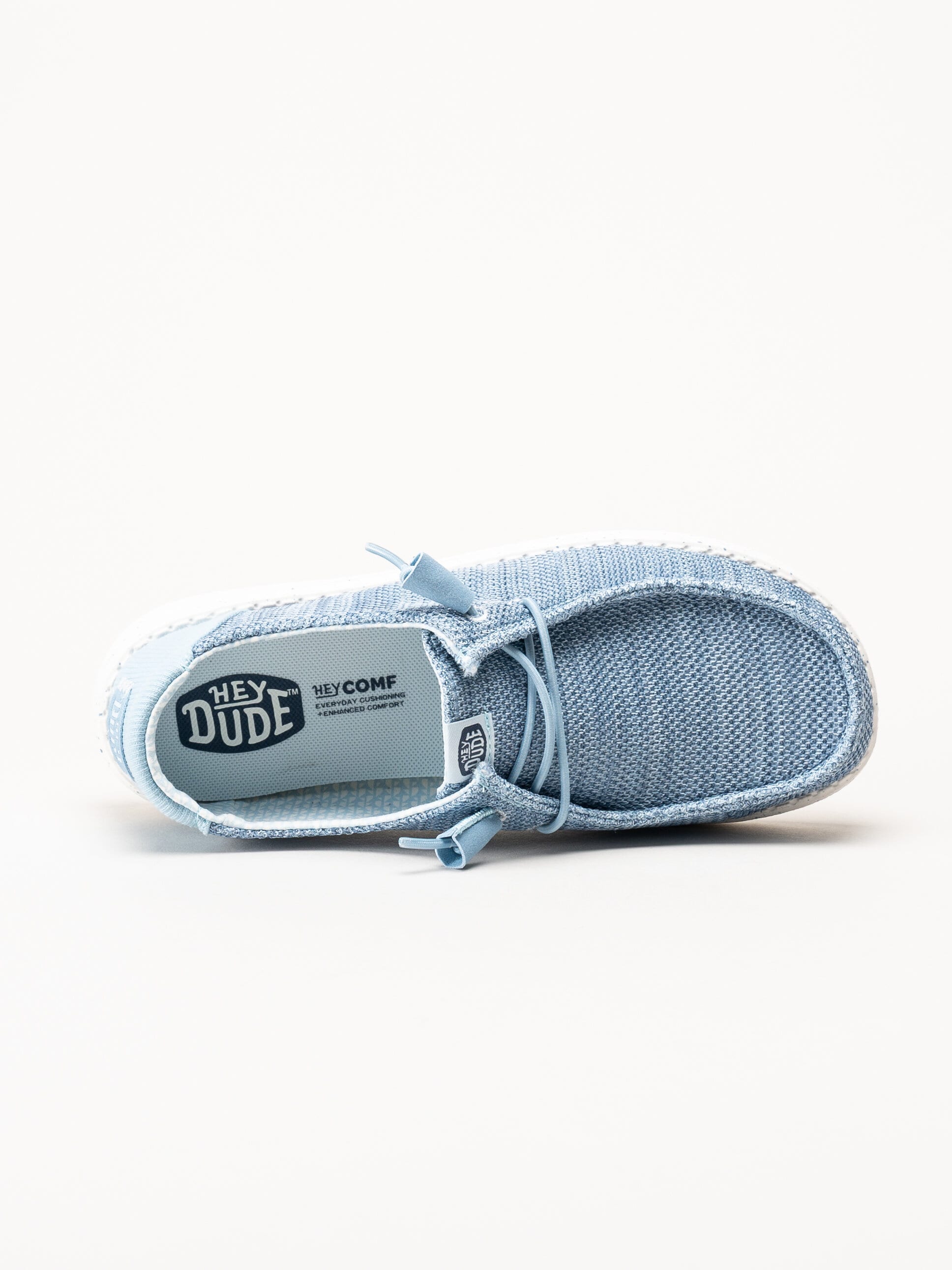 Ljusblå snörskor Wendy från Hey Dude i färgen Blue Breeze med en avslappnad och lätt design. Ovandelen är tillverkad i textil som ger ett mjukt och luftigt uttryck. Modellen har elastisk snörning som gör skorna enkla att ta på och av samt ger en flexibel och bekväm passform.