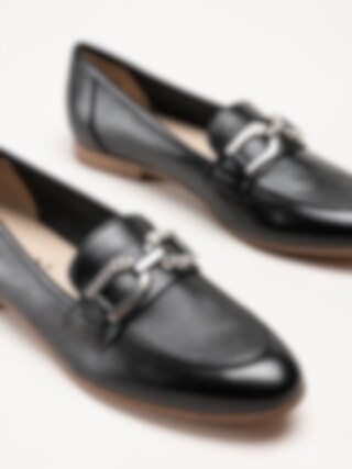 Caprice - Svarta loafers i skinn