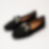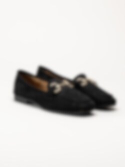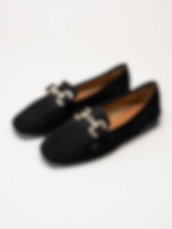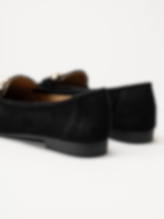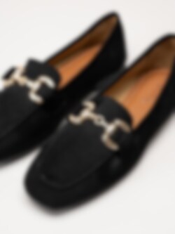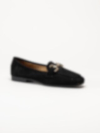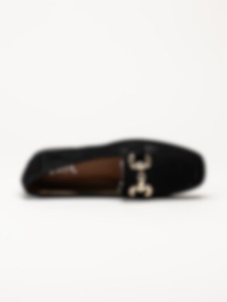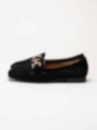 Svarta loafers med guldfärgat bett från Duffy. Klassiska, nätta loafers med yttermaterial i mockaliknande textil. Foder i textil, innersula och yttersula i syntet. En snygg och bekväm modell att spendera våren i.