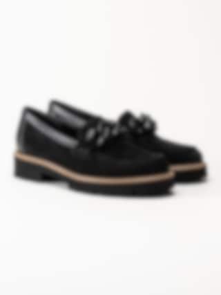 Gabor - Rollingsoft - Svarta loafers i mocka