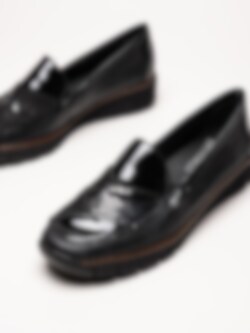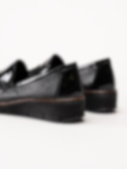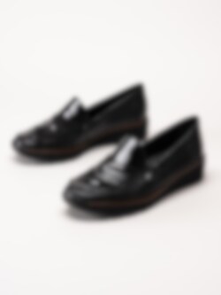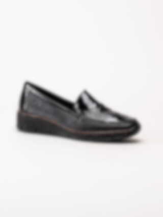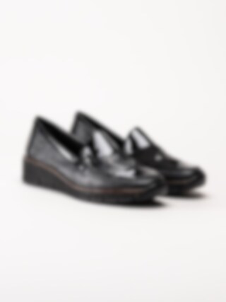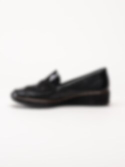 Rieker - Svarta kilklackade loafers med lackdetaljer