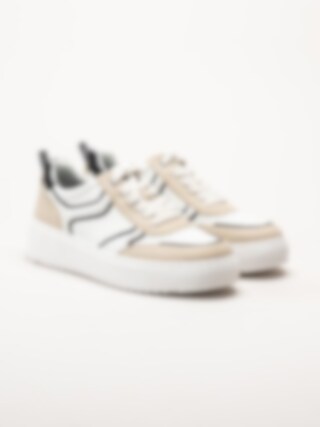 Marco Tozzi - Vita sneakers med beige detaljer