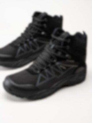 Svarta vandringskängor i textil och syntet från Network. Hikingkänga med waterproof membran som håller dig torr om fötterna. Kängorna är utrustade med Softshell textil som gör den mjuk och fölsam mot foten. Snörparti med 7 hål för bra passform och vadderad kant mot benet som är riktigt skönt. Yttersula i gummi med bra mönster för bättre grepp. Perfekt känga för höst och vinterns fritidsaktiviteter. Vi rekomenderar ullstrumpa för bästa resultat.