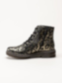 Yttersulan i gummi är både slitstark och mönstrad för stabilitet och pålitligt grepp på olika underlag. De synliga sömmarna längs sulkanten framhäver kängans moderna uttryck. Utrustad med Riekers Antistress-teknologi för en lätt och flexibel känsla i steget - perfekt för dig som vill kombinera stil, komfort och funktion i en och samma sko.