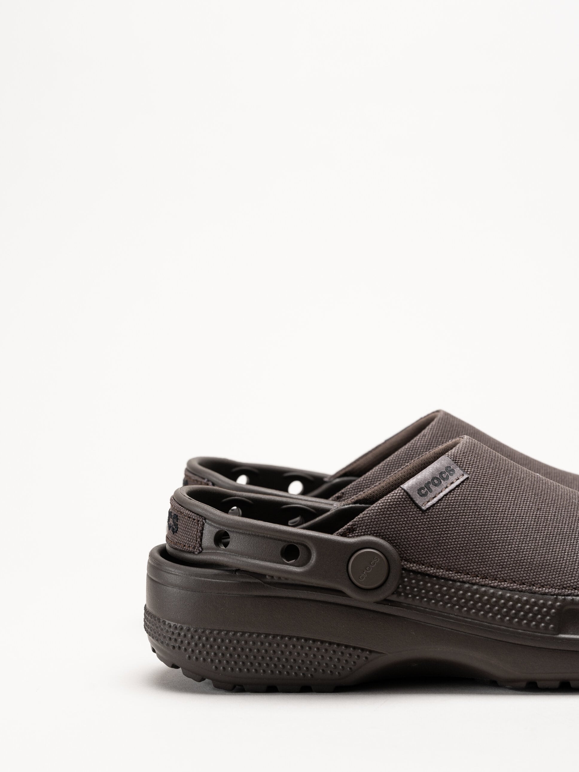 Mörkbruna Classic Crafted Clog från Crocs i färgen Espresso med en stilren och uppdaterad design. Modellen har samma klassiska passform och komfort som originalet, men är här utförd med en ovandel i canvastextil som ger ett mer klätt och genomarbetat uttryck.