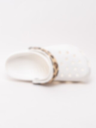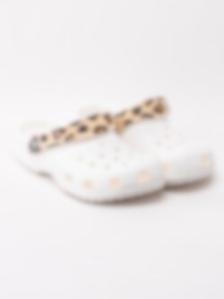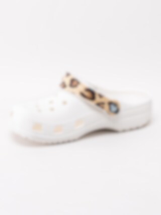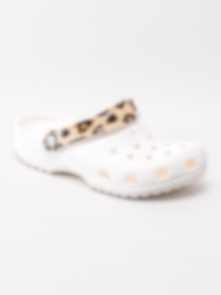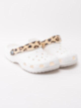Crocs - Classic Pop Strap Clog - Vita crocs med leopardrem