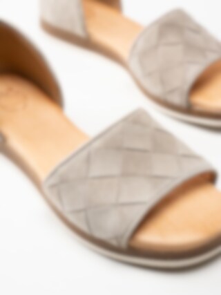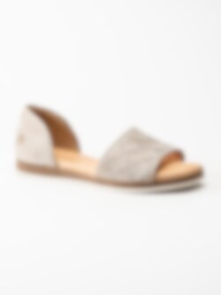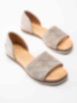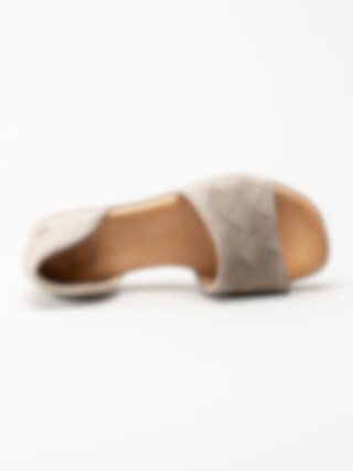 Beige sandalskor i mocka från Apple of Eden. Fina och dressade sandaler med täckt tå och mönstrad band. Styla med en dressad jumpsuit och du har en fin och härlig sommarlook. Skinnfodrade med en mjuk innersula i skinn. Brun mellansula i korkimitation och vit yttersula i syntet.