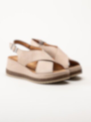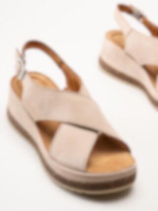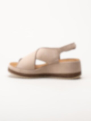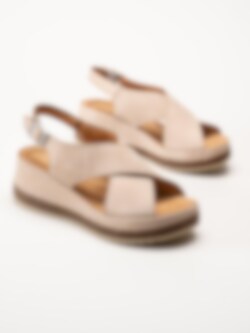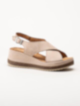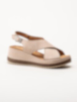 Clarks - Kassanda Step D - Beige kilklackade sandaler i nubuck