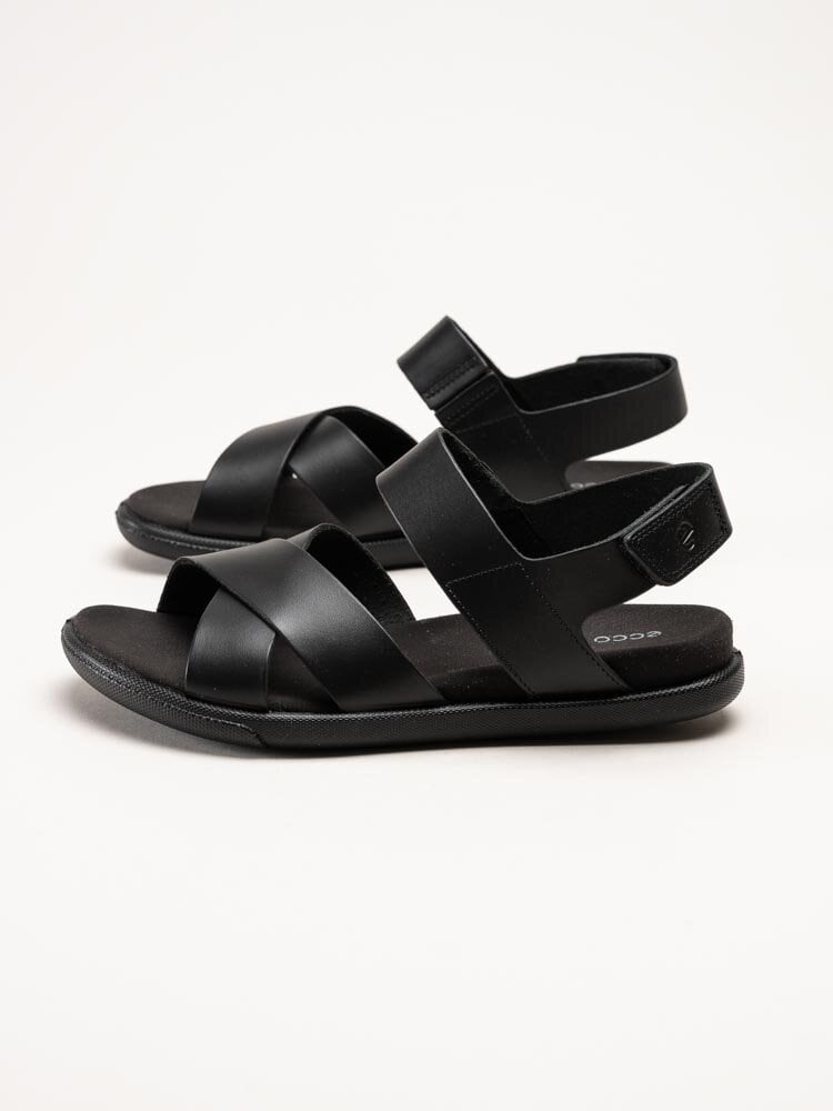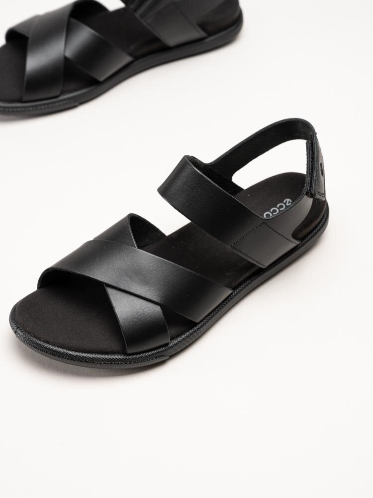 Svarta sandaler Samara från Ecco med en stilren och funktionell design. Ovandelen är tillverkad i skinn som ger ett mjukt och följsamt uttryck med hög komfort och hållbar kvalitet. Modellen har korslagda remmar över foten som ger ett stabilt och elegant intryck, samt en justerbar hälrem med kardborreknäppning som gör det enkelt att anpassa passformen efter foten.