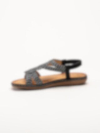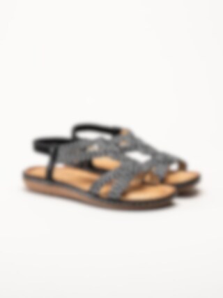 Andrea Conti - Svarta och silvriga t-sleif sandaler