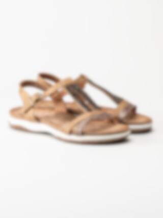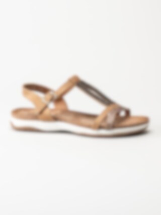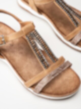 Ljusbruna sandaler 246Perrie i skinnimitation från Lunar. Fina sommarsandaler med dekorativa små stenar framtill.