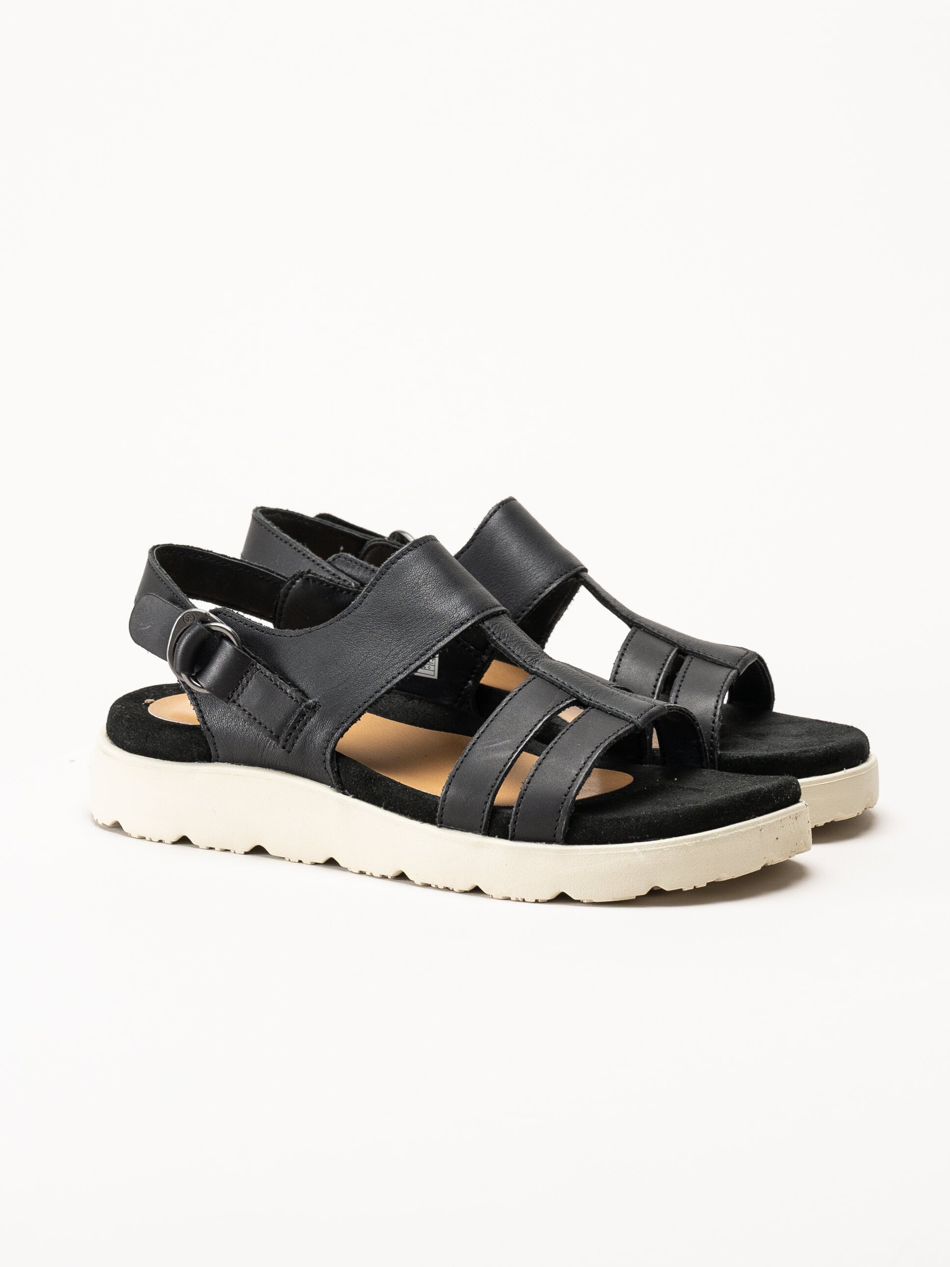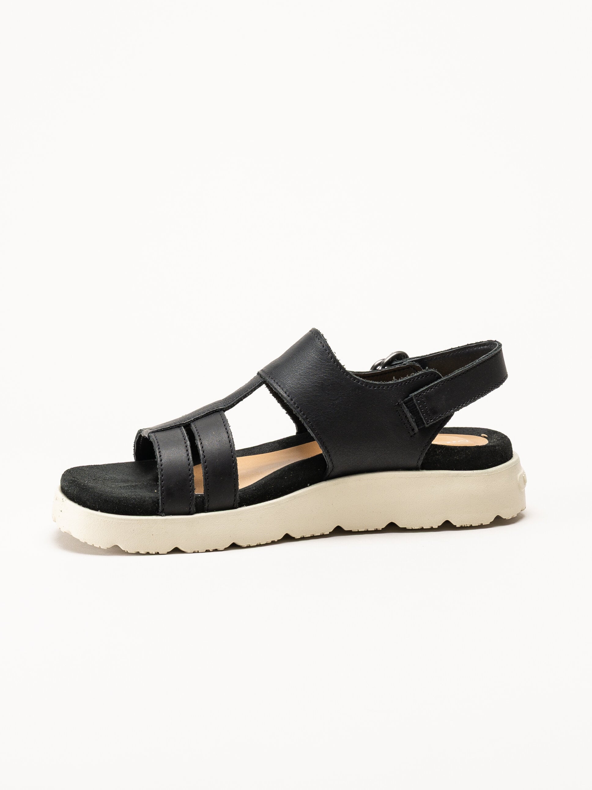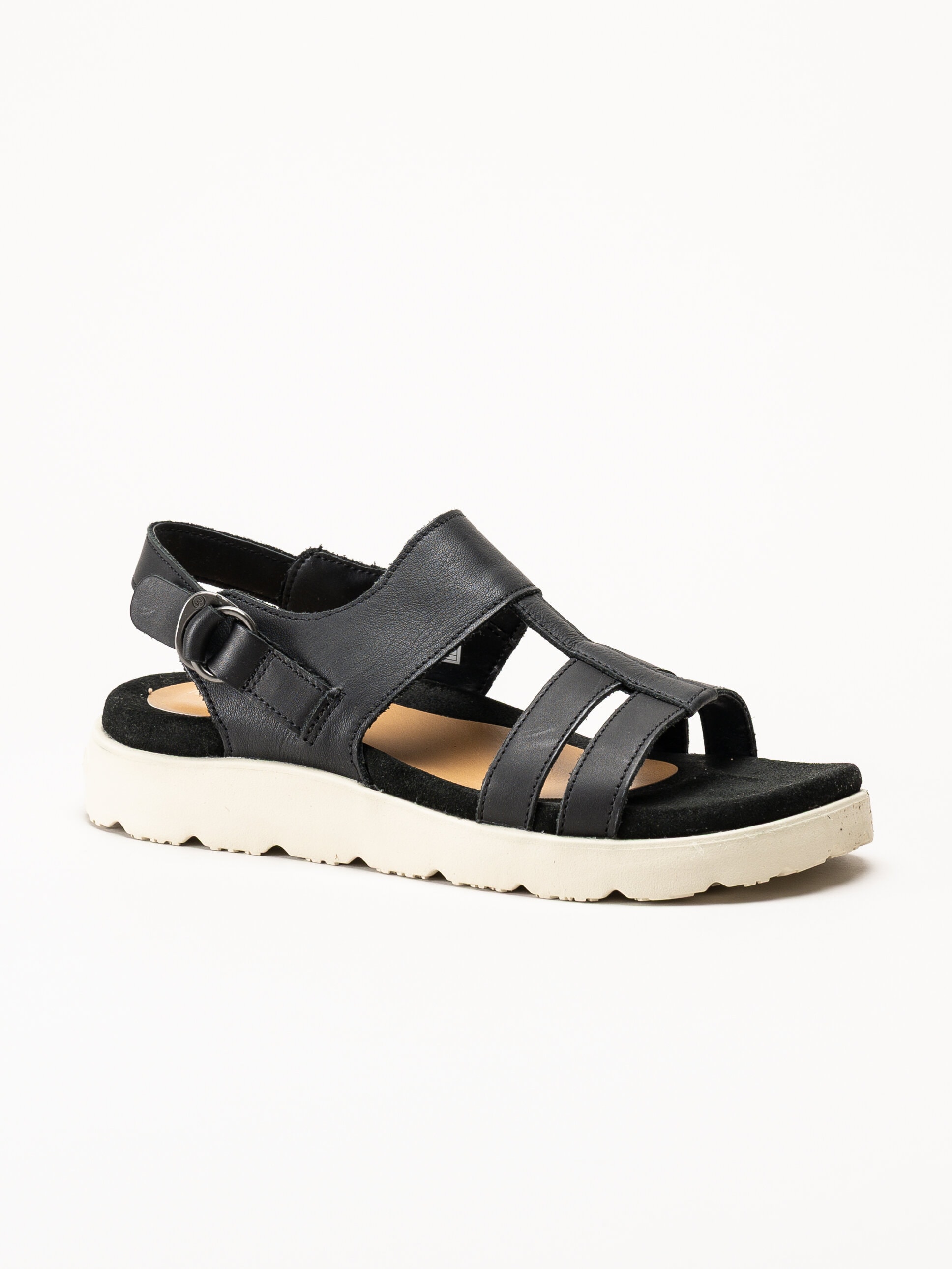 Svarta sandaler Fleur Backstrap från Merrell med en stilren och funktionell design. Ovandelen är tillverkad i skinn som ger ett mjukt och följsamt uttryck med god hållbarhet.