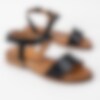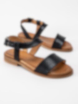 Svarta remsandaler från Pavement i skinn med reptilmönster.