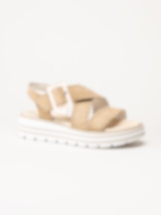 Beige sandaler från Remonte i färgen Sepia med en stilren och bekväm design. Ovandelen är tillverkad i mocka som ger ett mjukt och följsamt uttryck.
