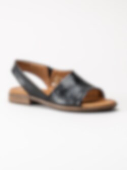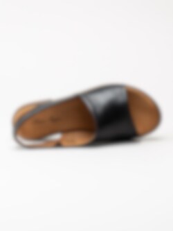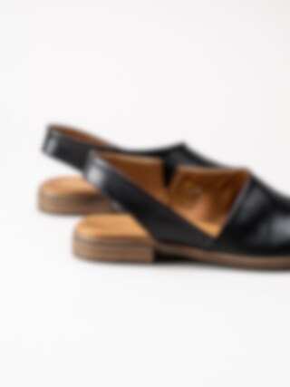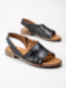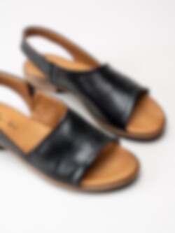 Svarta sandaler i skinn från Rosa Negra. Sköna sandaler med foder och innersula i skinn. Yttersula i syntet med en låg klack. Logga vid sidan av sandalen. En snygg modell att kombinera med en härlig klänning eller kanske dina favoritjeans!