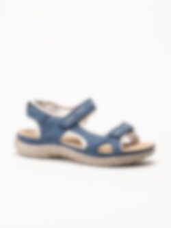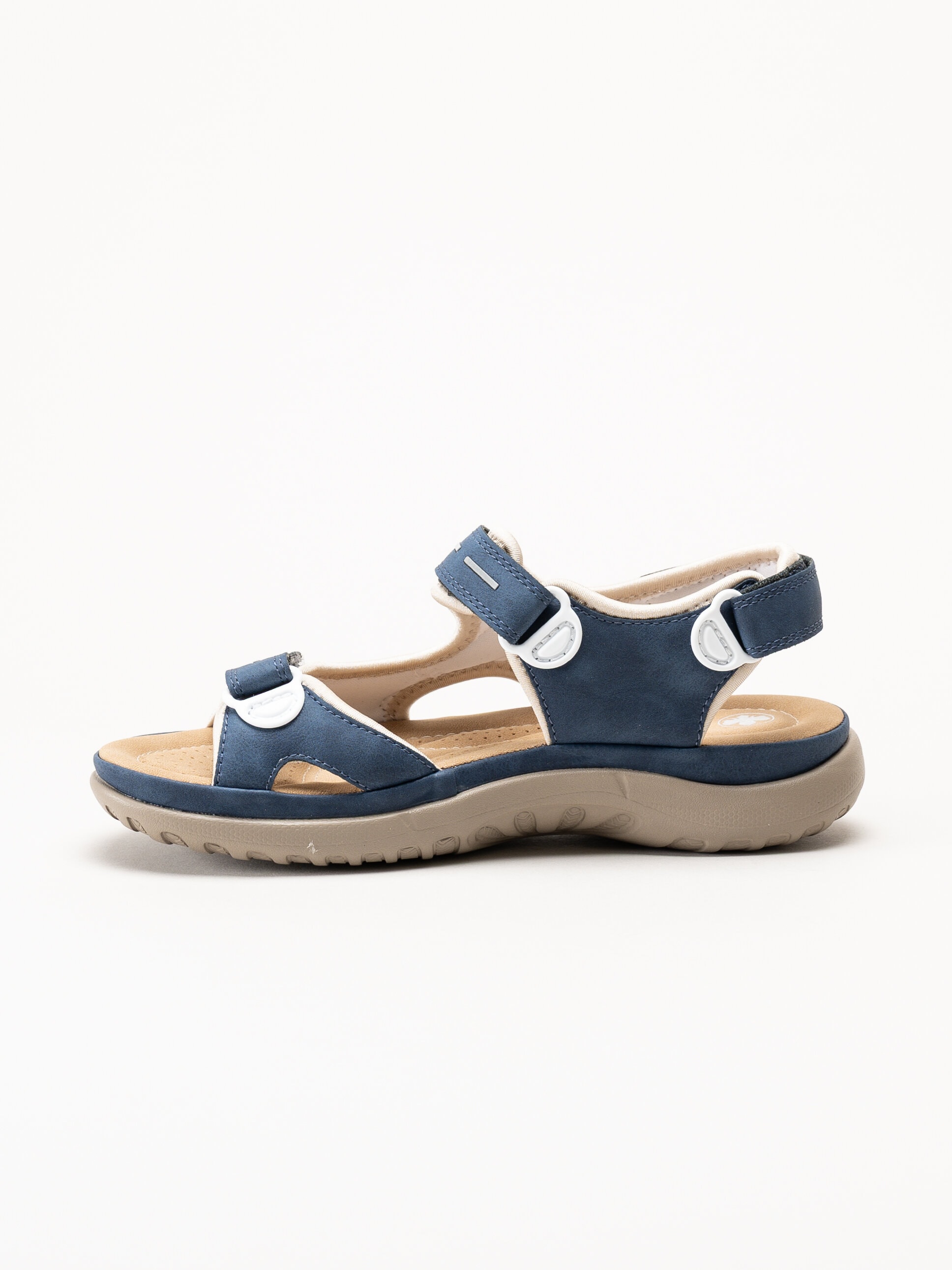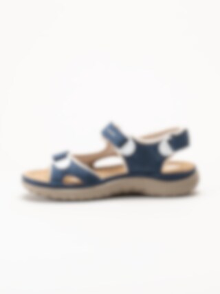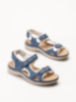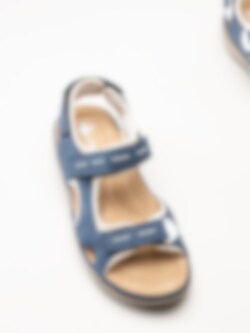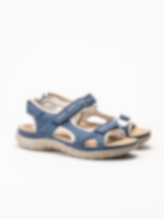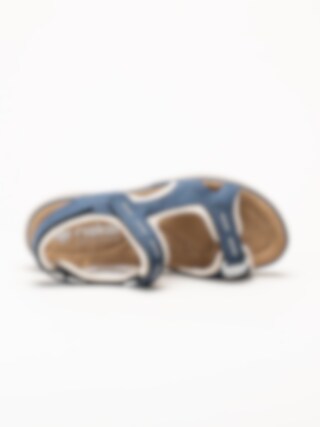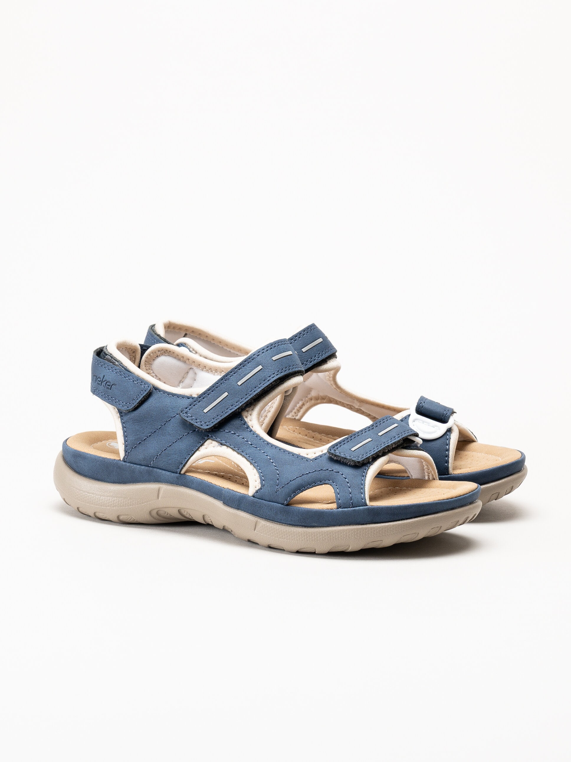Blå remsandaler från Rieker i färgen Blue med en lätt och bekväm design. Ovandelen är tillverkad i syntet och ger ett följsamt och slitstarkt uttryck. Modellen har flera kardborrespännen, även baktill vid hälen, vilket gör det enkelt att justera passformen för optimal komfort och stöd.