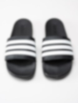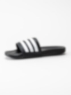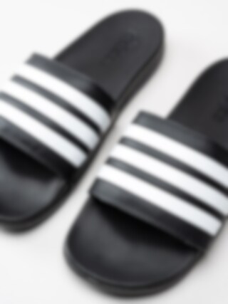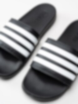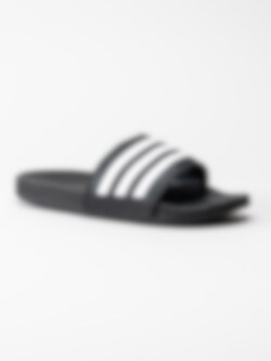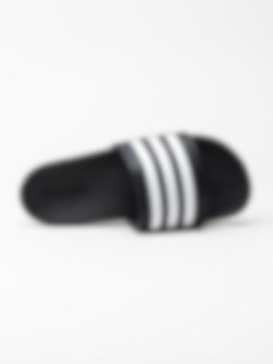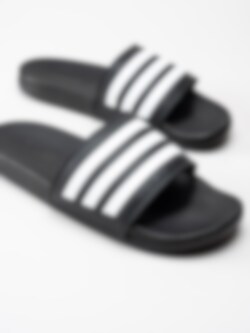 Svarta slip in badsandaler från Adidas. Sköna sandaler tillverkade i syntet med foder i textil och en bekväm innersula i syntet. Yttersula i syntet. Vita ränder på framsidan av sandalerna.