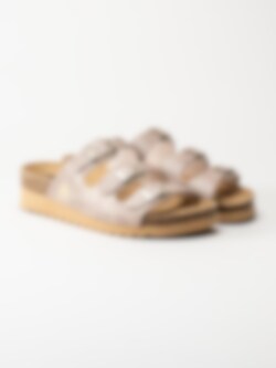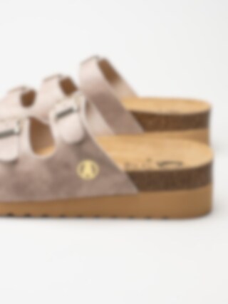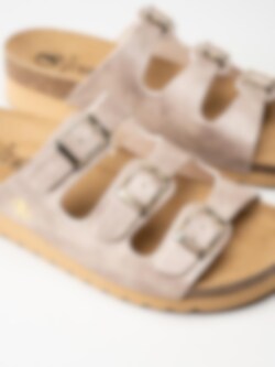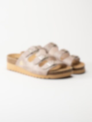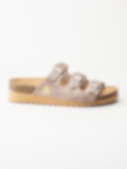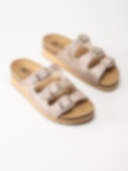Beige sandaler i veganskt läder från Axelda. Ett par fina och somriga remsandaler i slip-in modell med tre justerbara remmar. Tillverkade i syntet med foder och innersula av textil. Ljus yttersula av syntet med en klackhöjd på ca 4cm.