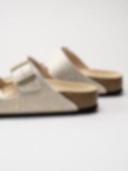 Birkenstock - Arizona Narrow - Beige reptilmönstrade slip in sandaler