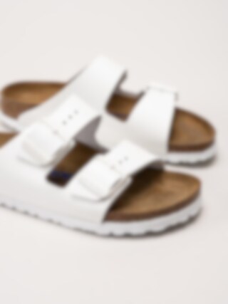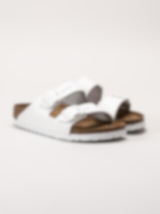 Birkenstock - Arizona Narrow SFB - Vita slip in sandaler i skinn med smal läst