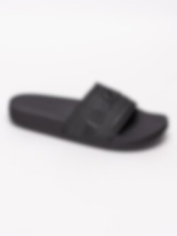 Svarta badsandaler Romeo för kvinnor från Björn Borg i syntet. Perfekta att använda till och från stranden eller poolen. Enkel påtagning genom att bara sticka in foten. Stor 3D-logotyp på bandet över fot med prickar. Svart foder i textil och innersula i syntet med präglad logga i hälen. Svart yttersula i syntet med diamantmönster och präglad logga i mitten.