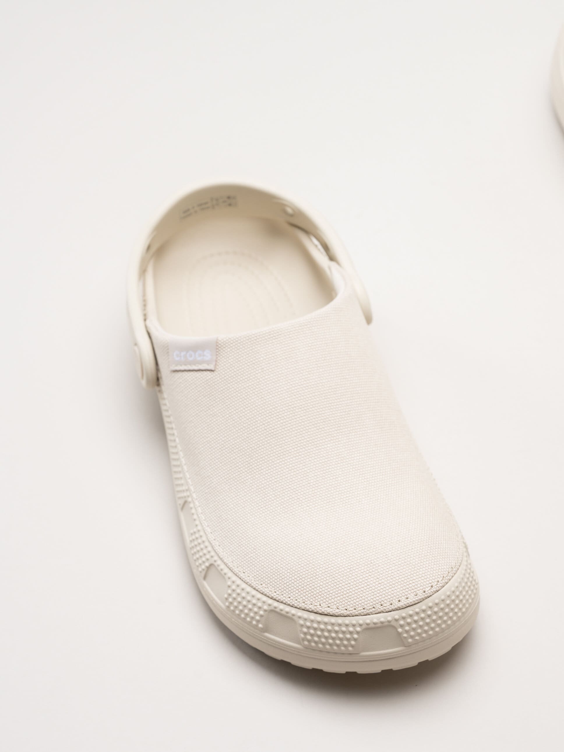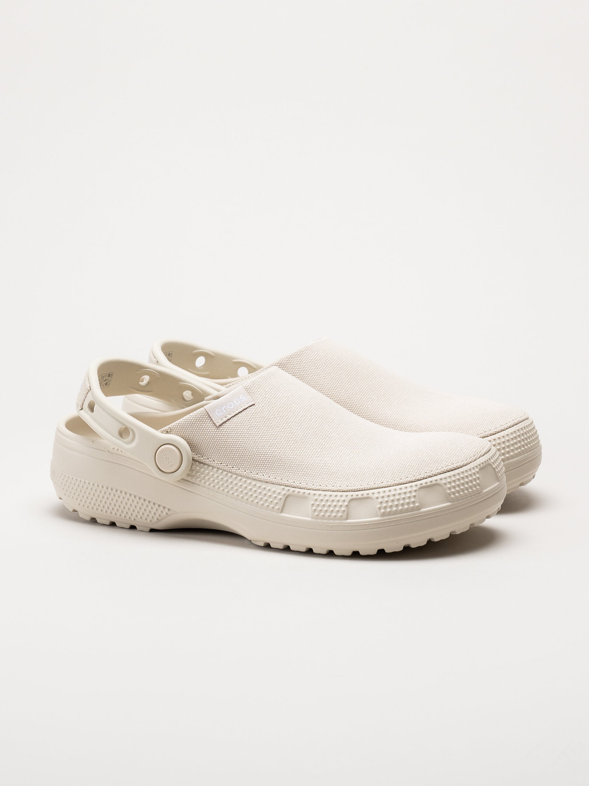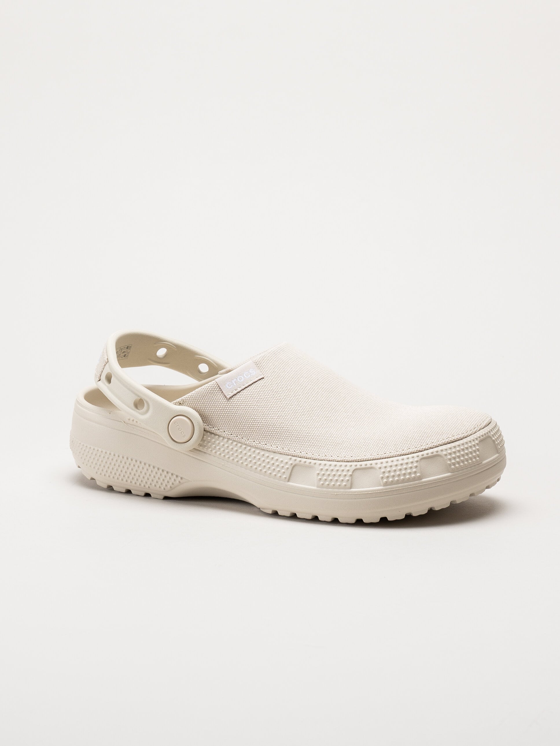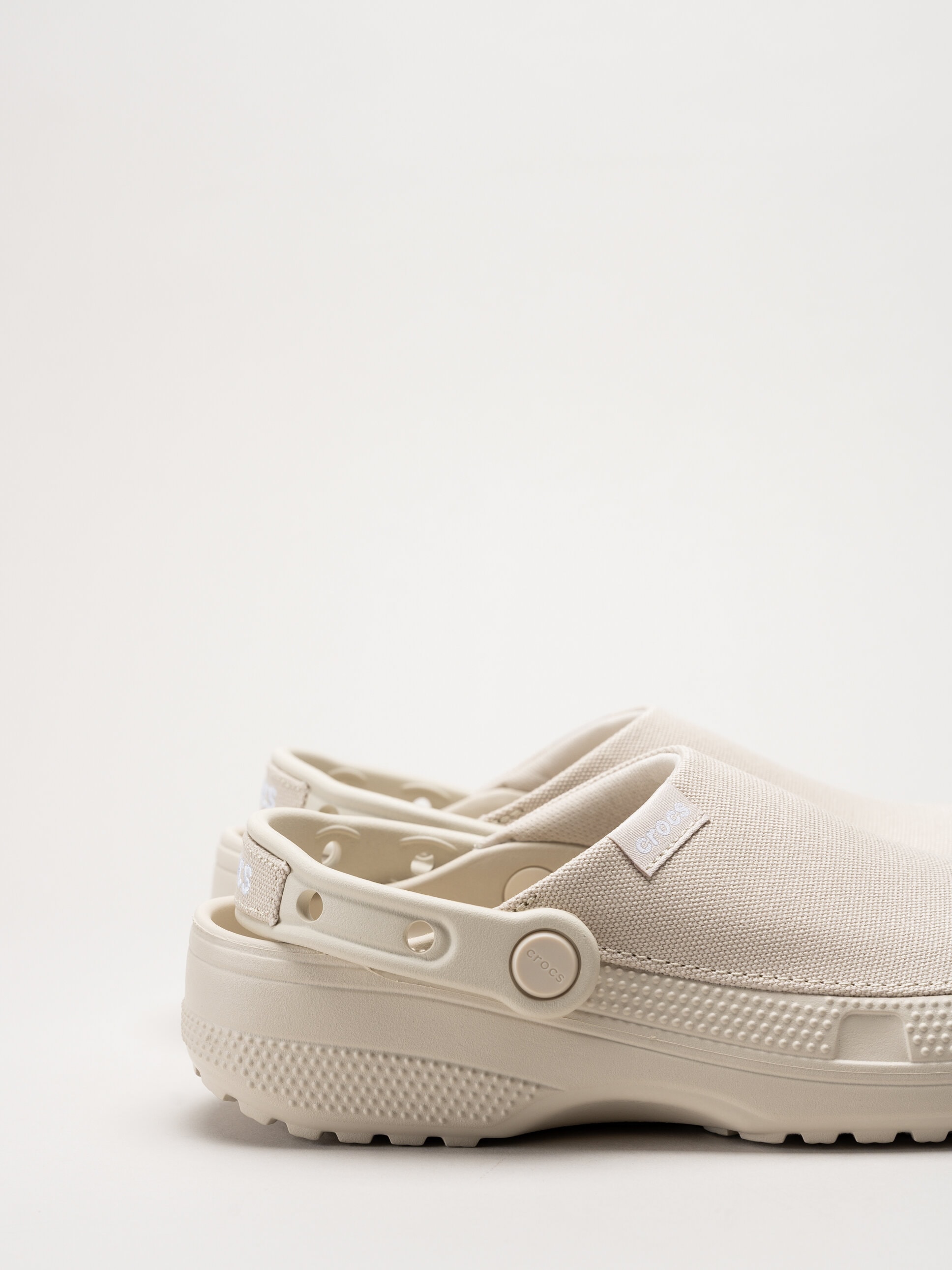Ljusbeige Classic Crafted Clog från Crocs i färgen Stucco med en stilren och uppdaterad design. Modellen har samma klassiska passform och komfort som originalet, men är här utförd med en ovandel i canvastextil som ger ett mer klätt och genomarbetat uttryck.