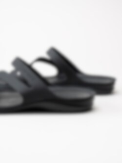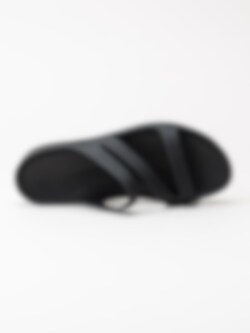 Svarta sandaler Swiftwater för kvinnor från Crocs tillverkade med sula i mjukt Croslite material för ökad komfort och stötdämpning. Slip in modell med korsade band som omsluter din fot med präglad logga på övre rem som detalj. Svart innersula med prickigt mönster och präglad logga i häl. Svart yttersula i syntet med mönster och präglad logga.