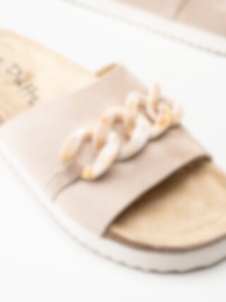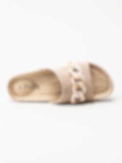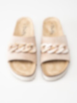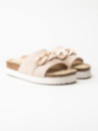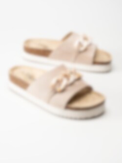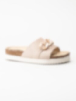 Beige slip in sandaler med dekorlänk från Duffy. Här har ni en fin favorit från Duffy! Ett par somriga sandaler tillverkade i textil med foder och innersula i textil. En ordentlig vit yttersula i syntet. Guldfärgad dekorlänk som präglar framsidan.
