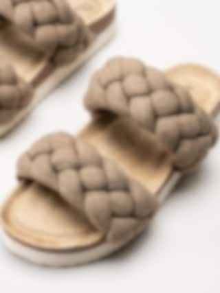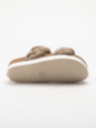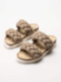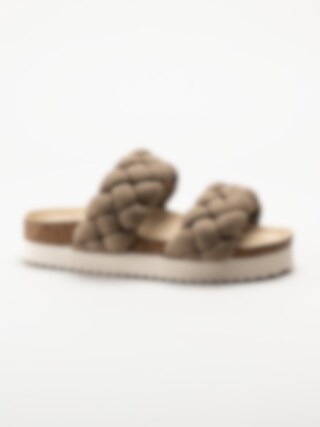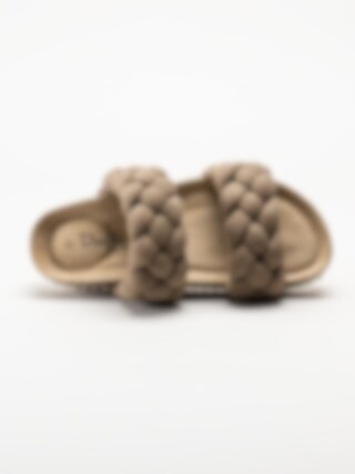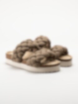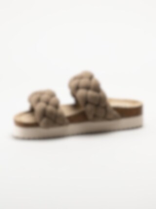 Bruna slip in sandaler i färgen Taupe med flätade remmar från Duffy. Fin slip in sandal med två mjuka vadderade och flätade remmar i textil över foten. Mjuk innersula i textil med extra vaddering i hälen för skön komfort. Platåsula med korkimitation på sidan och vit yttersula med EVA för komfort. Slip in sandal med riktigt mjuka flätade remmar till sommarens härliga dagar.
